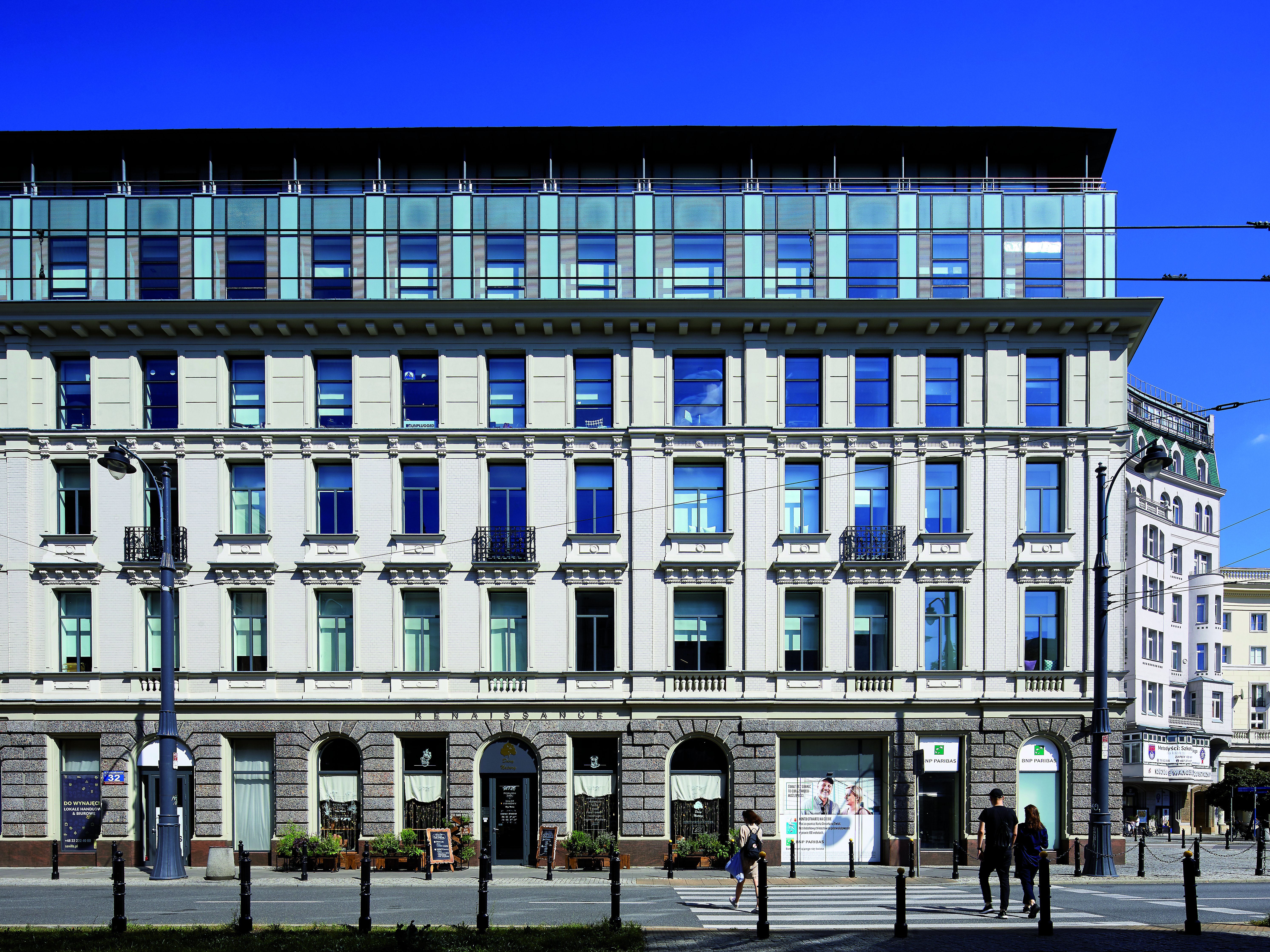 Das „Renaissance“-Gebäude liegt an der Kreuzung der wichtigsten Hauptstraßen Mokotowska und Marszałkowska am Plac Zbawiciela. Vor allem die Mokotowska ist eine der schönsten Straßen Warschaus, da sie als einer der wenigen Straßenzüge den Krieg fast unversehrt überstanden hat und somit den „alten Charakter“ bewahren konnte. Die hohen, reich verzierten Wohnhäuser wurden renoviert und bieten nun Platz für teure Boutiquen und Restaurants.
